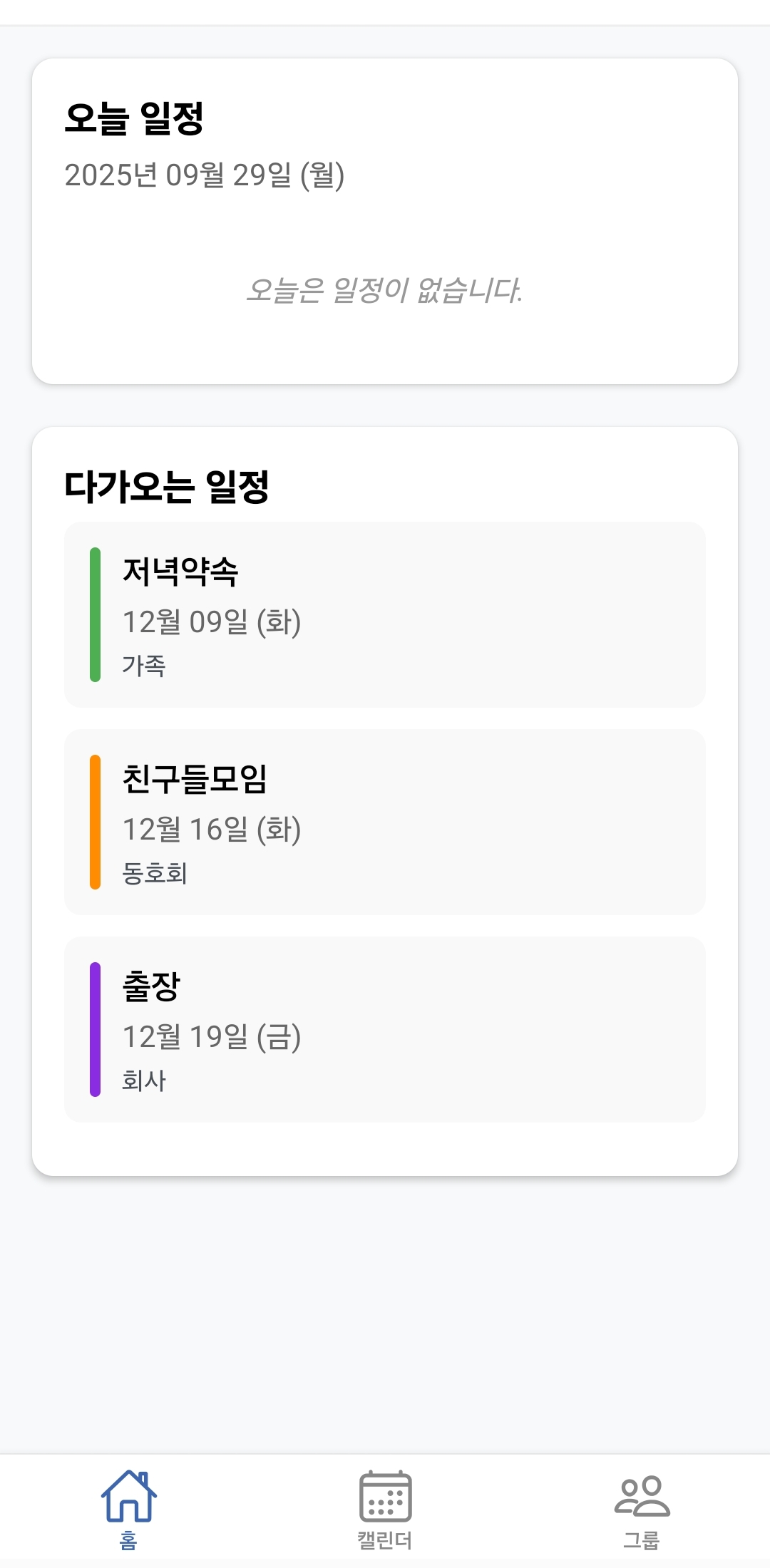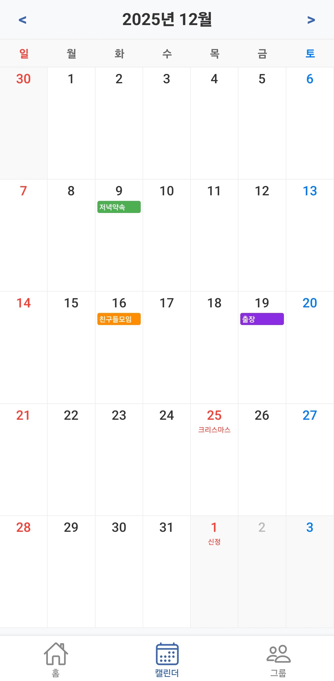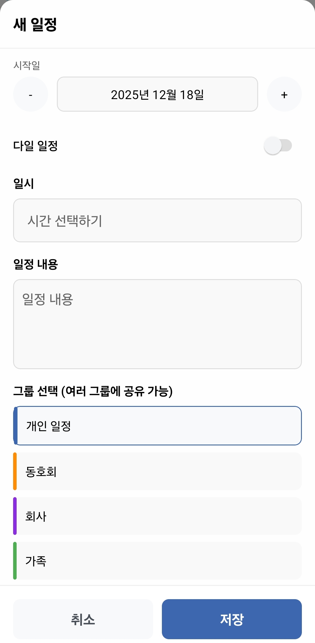 각자의 색으로 구분된 일정, 실시간 동기화, 간편한 공유. 필요한 기능만 담아 누구나 쉽게 사용할 수 있습니다.