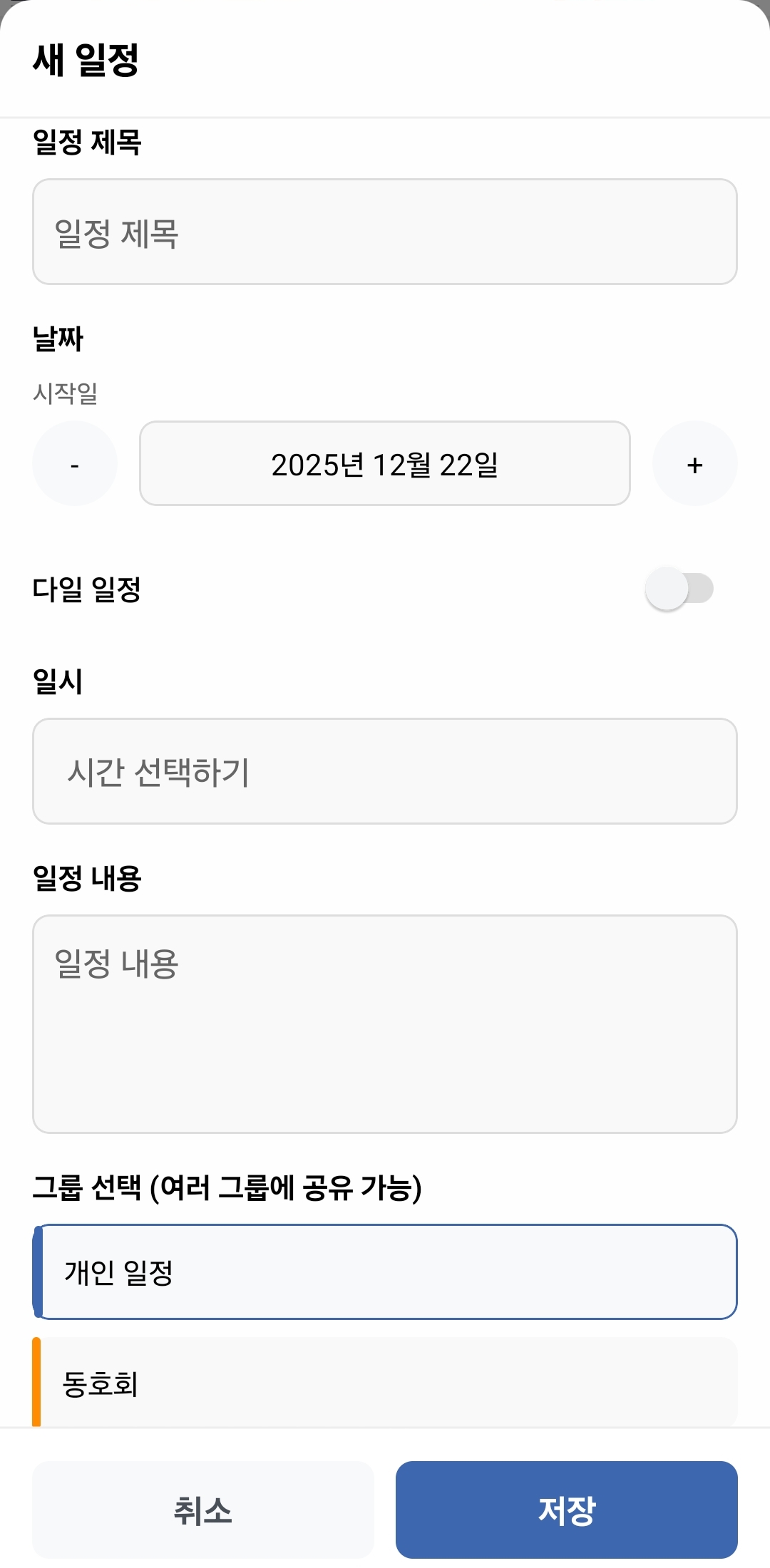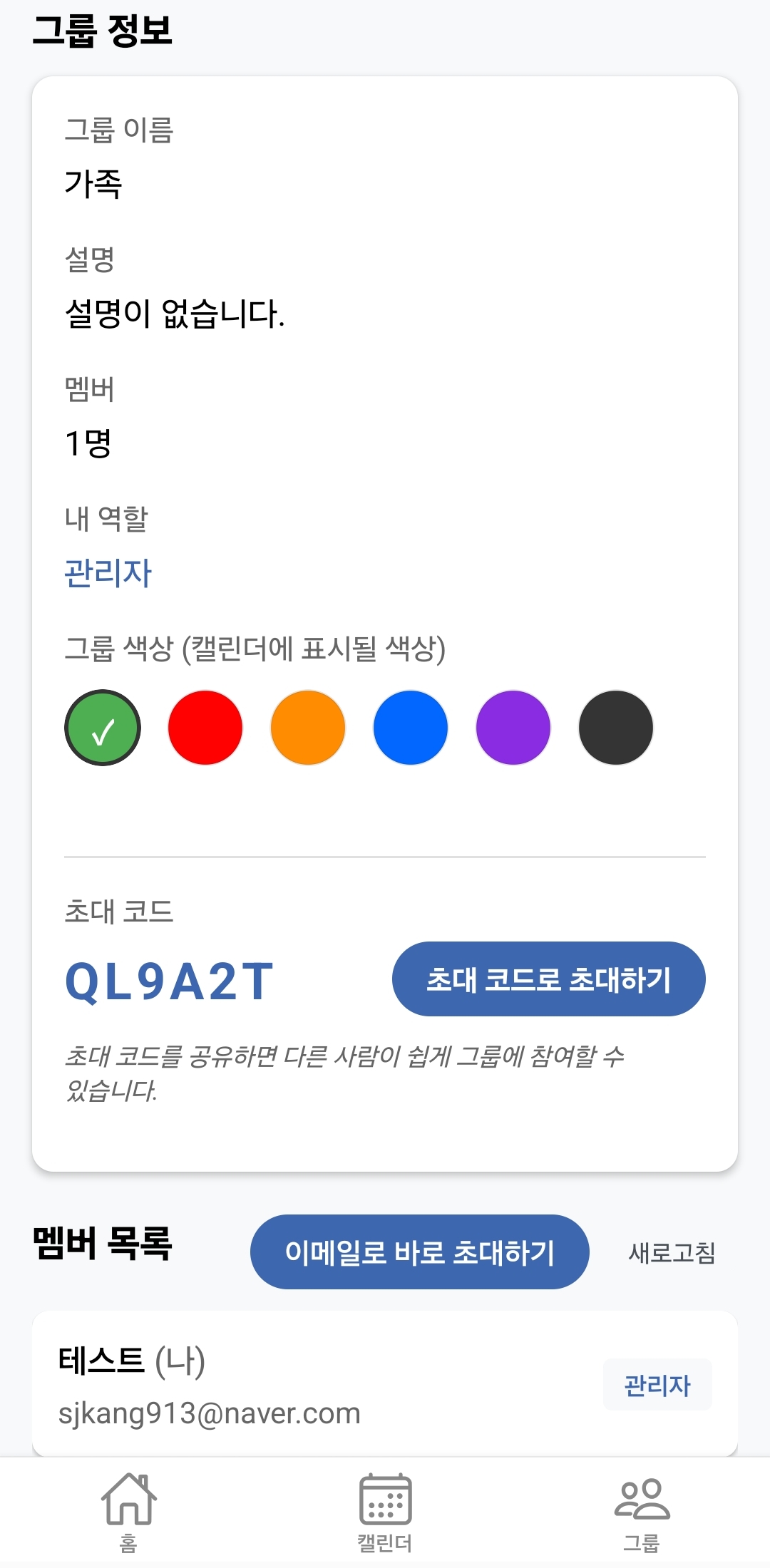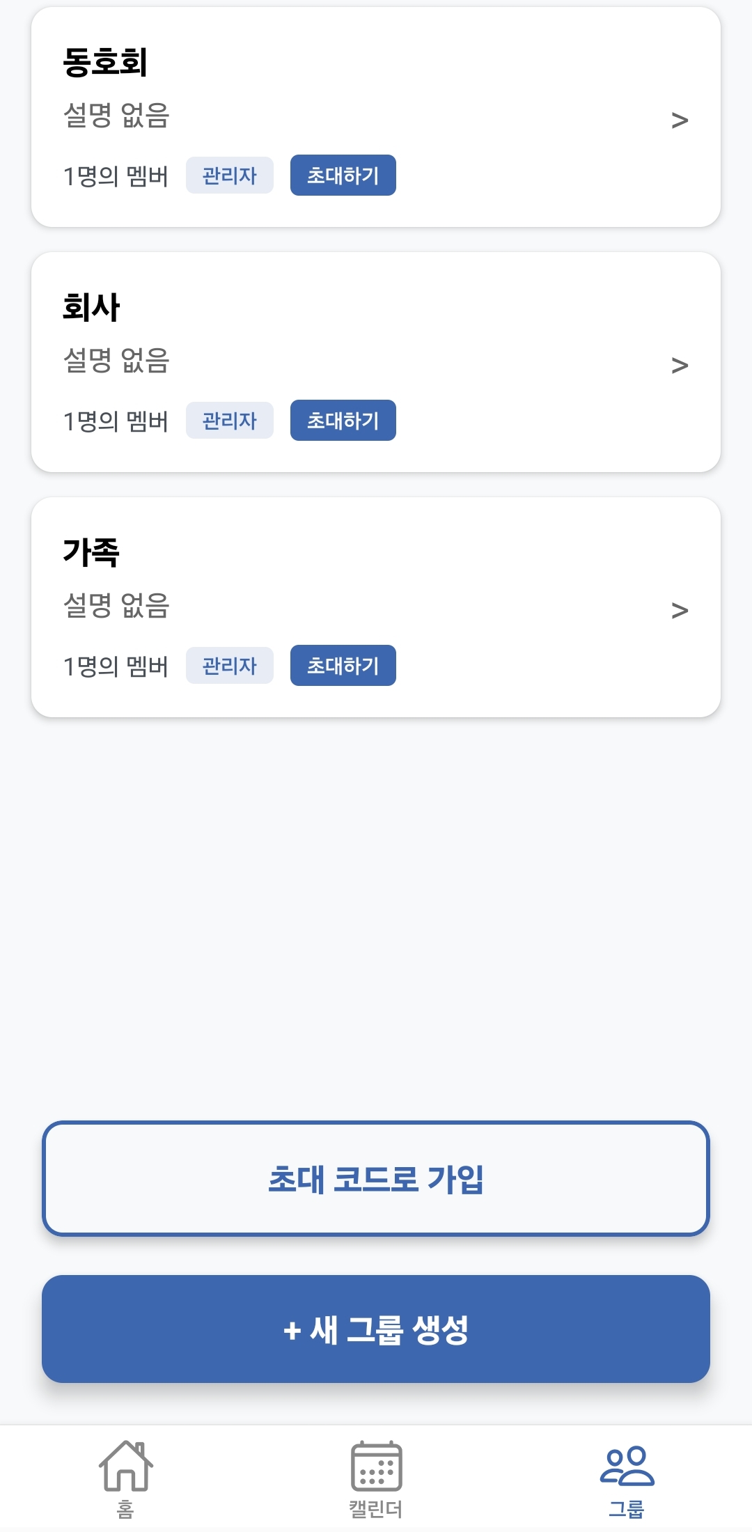 각자의 색으로 구분된 일정, 실시간 동기화, 간편한 공유. 필요한 기능만 담아 누구나 쉽게 사용할 수 있습니다.